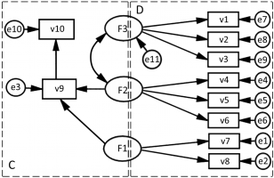 The first stage - formation of the model. The model graphically depicts the researcher's speculation about the structure of directed and undirected relationships between variables and latent constructs. Variables should be quantitative and normally distributed. It is possible to use categorical variables if the categories are ordered. It is permissible to include in the model binary variables (taking only two values - 0 or 1 from a combination of factors), for example, the gender of the subject. Since the method of structural modeling is quite new, the generally accepted requirements for assessing a satisfactory sample size have not yet developed. In international and domestic science, they are still guided by certain criteria proposed by R. Kline [4], based on the ratio of the number of subjects and the number of evaluated parameters. In accordance with his recommendations, the ideal sample size should be considered to be 20 times the number of parameters being evaluated. If the number of subjects is 10 times greater than the number of evaluated parameters, then such a sample can be considered acceptable. A 5-fold excess of the sample size over the estimated parameters is considered insufficient for confidence in the reliability of the results obtained.