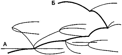 - Эвристика как метод. Если представить все этапы решения некоторой задачи в виде пути на графе потенциально возможных решений, то получим большое количество вариантов. Как простейший пример, можно привести поиск шифра замка сейфа. При отсутствии информации хотя бы об общих принципах организации этого шифра, надежд на решение задачи нет. Количество комбинаций растет лавинообразно при добавлении каждого барабана кодовых цифр. На рис.11 подобная ситуация изображена в виде лабиринта (графа), имеющего вход в точке А и выход в точке Б. Ясно, что поиск выхода из такого лабиринта сопряжен с огромным перебором возможных вариантов. Ясно также, что перебор вариантов и время решения м. б. резко сокращены при наличии дополнительной информации и компетенции, напр., умений составлять карту и работать с компасом, или знаний, что в данном лабиринте на развилке нужно всегда поворачивать вправо.