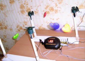 Конструктивное оформление разработки реализовано (см. фото) в виде снабженных электромеханическими побудителями витания в воздушной среде объемных фигурок сердец различного цвета. Для диапазона варьирования ЧСС в пределах 50–65 уд/мин соответствует фигурка сердца зеленого цвета, 66-76 уд/мин – синего цвета, 77–87 уд/мин – оранжевого цвета и более 88 уд/мин – красного цвета. Включение соответствующего электромеханического побудителя витания фигурки сердца в окружающей воздушной среде осуществляется с помощью пульсометра, снабженного многоканальным компаратором частоты, что обеспечивает дифференцированное, в зависимости от интервала варьирования показателя ЧСС, инициирование «полета» фигурки определенного цвета.