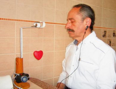 Новизной разработанного метода ускоренного освоения приемов повышения уровня стрессоустойчивости на основе кардиоБОС-тренинга является реализация приемов визуального мониторинга ЧСС в трехмерном пространстве путем использования подвешенной на тонкой (практически невидимой) эластичной нити объемной ярко - красной фигурки сердца, совершающей с помощью миниатюрного электромагнитного побудителя механические колебания, автоматически синхронизированные с частотой пульса пользователя.
