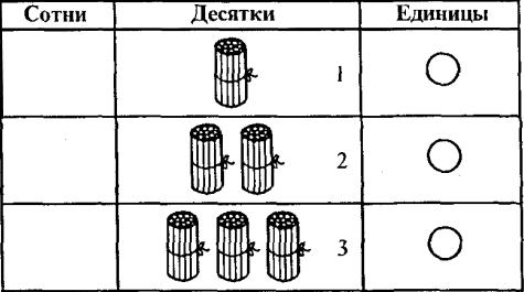 Деление вводится как действие, обратное умножению: переход на укрупненную меру. Допустим, есть 10 ложек крупы. Надо узнать, на сколько птичек хватит этой крупы, если каждая птичка съедает по две ложки. И надо знать, сколько раз содержится эта новая мера в измеряемом. Как видим, на основе меры и действия измерения можно показать детям и число, и действия с ним. Эти же понятия позволяют раскрыть перед учащимися различные системы счисления и позиционный принцип их построения. Каждый новый разряд системы счисления рассматривается как новая мера счета, а соотношения разрядов как соотношения мер, каждая из которых в определенное число раз больше, чем мера предыдущего разряда. Так, в деся­тичной системе 10 единиц первого разряда (единиц) дают единицу второго разряда (десятки) и т.д. Учащиеся сами образуют новые «меры счета», работая с разрядной сеткой.
