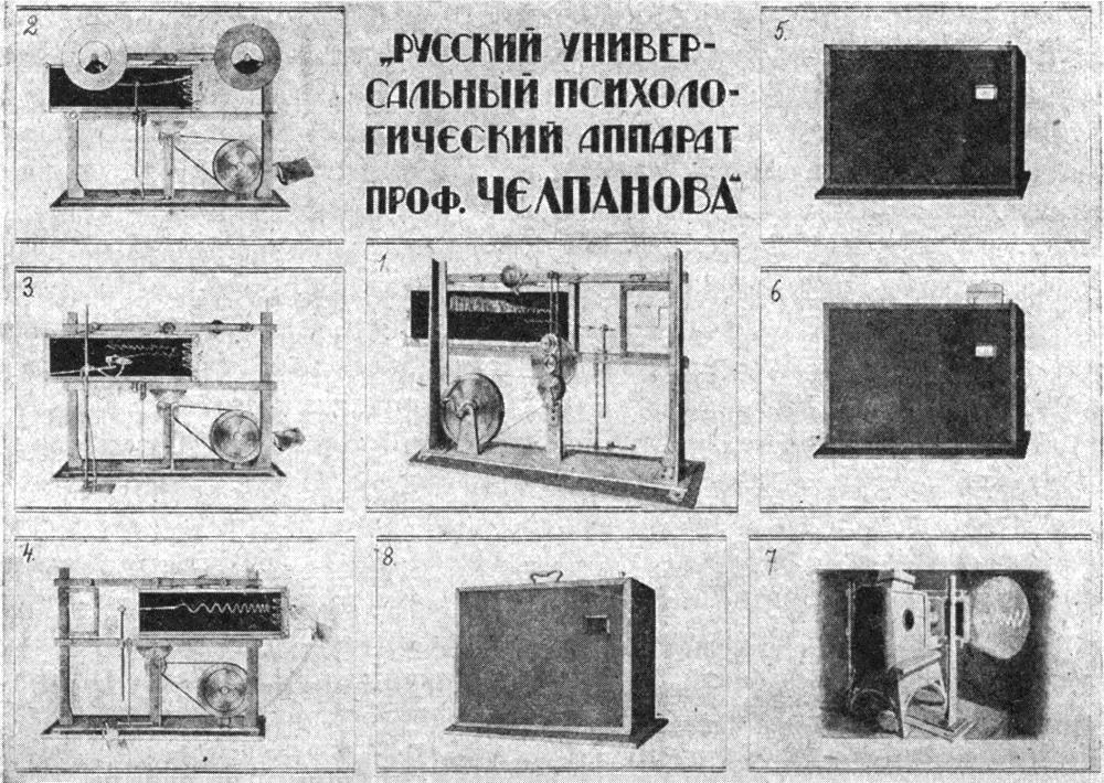 Как уже было сказано выше, техническое оборудование Психологического института было самым передовым для своего времени. Институт был прекрасно оснащен аппаратурой: свыше 150 специальных приборов для изучения всех видов ощущений и психических процессов ожидали исследователей; были в наличии и так называемые «общие» приборы - вольтметр, амперметр, метроном и гордость Г.И. Челпанова - новейший проекционный аппарат. Позднее нашел свое достойное место в Институте и многофункциональный «Русский универсальный аппарат», предназначенный для демонстрации психологических экспериментов и самостоятельной экспериментальной работы, сконструированный самим Г.И. Челпановым31.