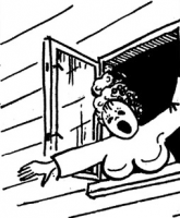 3. САНАМАВАНА. Начало Слизкой улицы. Я − у Сухаревой башни со стороны Первой Мещанской (почему-то в сеансах запоминания я часто оказываюсь на этом углу). У ворот башни стоят сани (САНА), на них сидит моя квартирная хозяйка (Мава) и держит в руках длинную белую доску (НА), которую сквозь ворота башни кидает, но − куда? Длинная доска − трафаретный образ "НА": "НАД" − та же доска, но выше человеческого роста, выше одноэтажных деревянных домов.