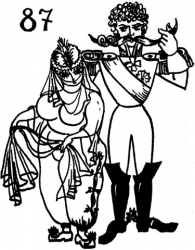 2. НАСАНАМАВА. Старьёвщик уже на улице, у ворот дома. Он в недоумении разводит руками, вспоминая слова хозяйки, что "нашим (наса) продать нечего", и указывает на стоящую рядом женщину с высоким бюстом − кормилицу ("НАМА" − кормилица по-еврейски "а нам"). Прохожий возмущается и говорит: "Вай ("Ва")! непохвально, мол, для старого еврея поглядывать на кормилицу.